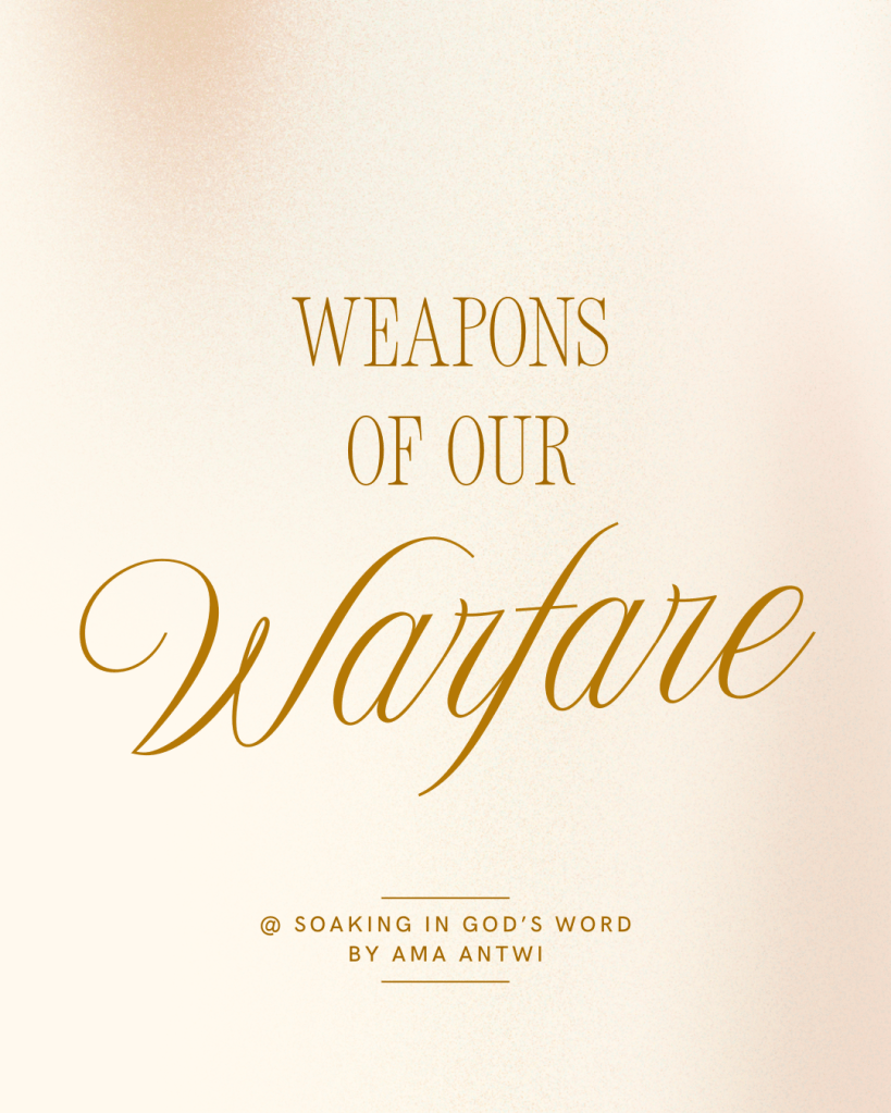 In today’s devotion, we focus on “Weapons of our Warfare.” These weapons have been given to us in Christ to overcome the opposition and oppression from the enemy. While the term “weapons” might evoke images of violence in the secular world, these weapons are gentle yet powerful tools for building God’s Kingdom and devastating to the works of the enemy. Beloved, we are called to wage war against the enemy with grace and strength through Jesus Christ.